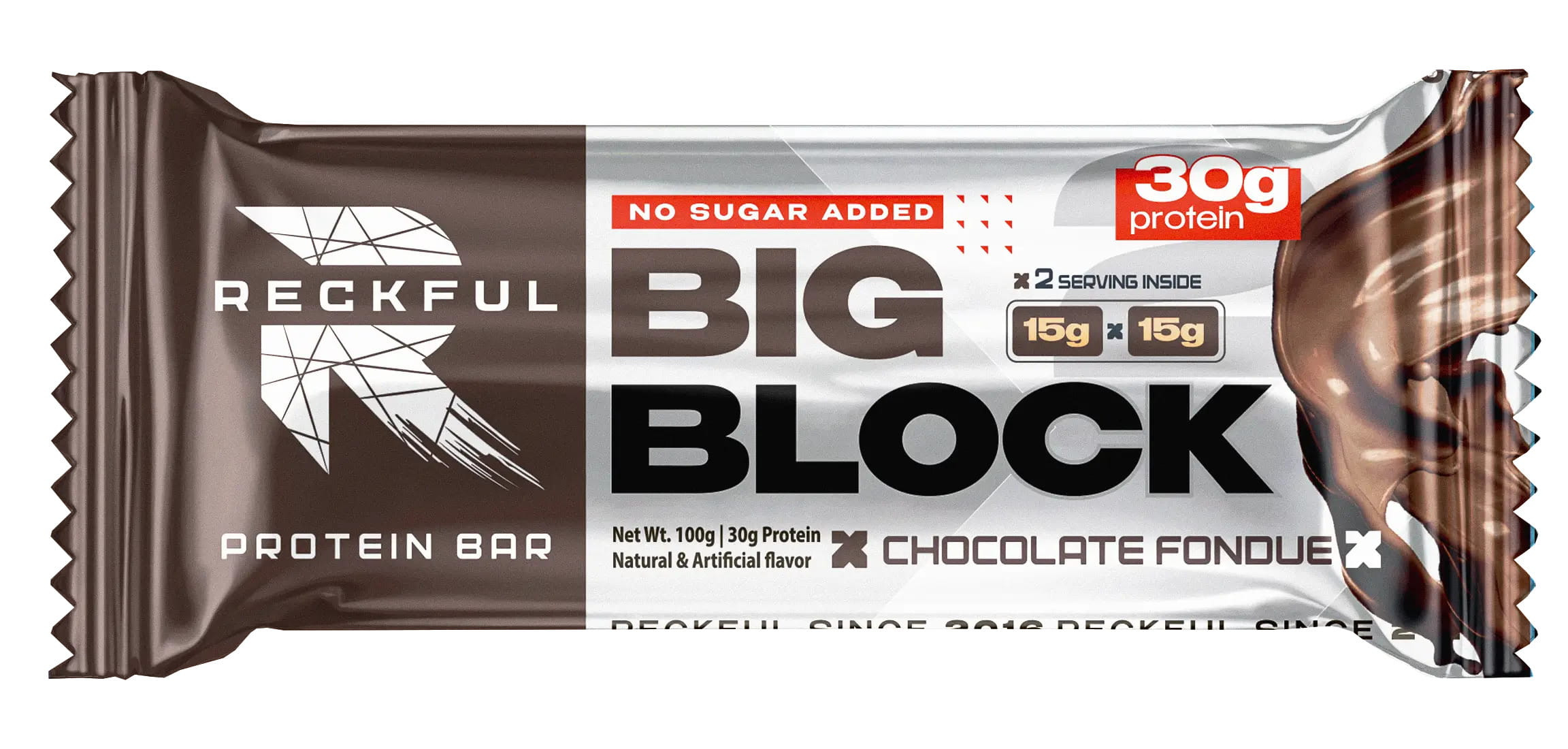 Протеиновый батончик RECKFUL BIG BLOCK 100г — это высокобелковый снек, разработанный для спортсменов и людей с активным образом жизни, содержащий 30 г белка на один батончик. Особенностью продукта является его формат: батончик весом 100 г разделен на две порции по 50 г, что позволяет употреблять его частями.